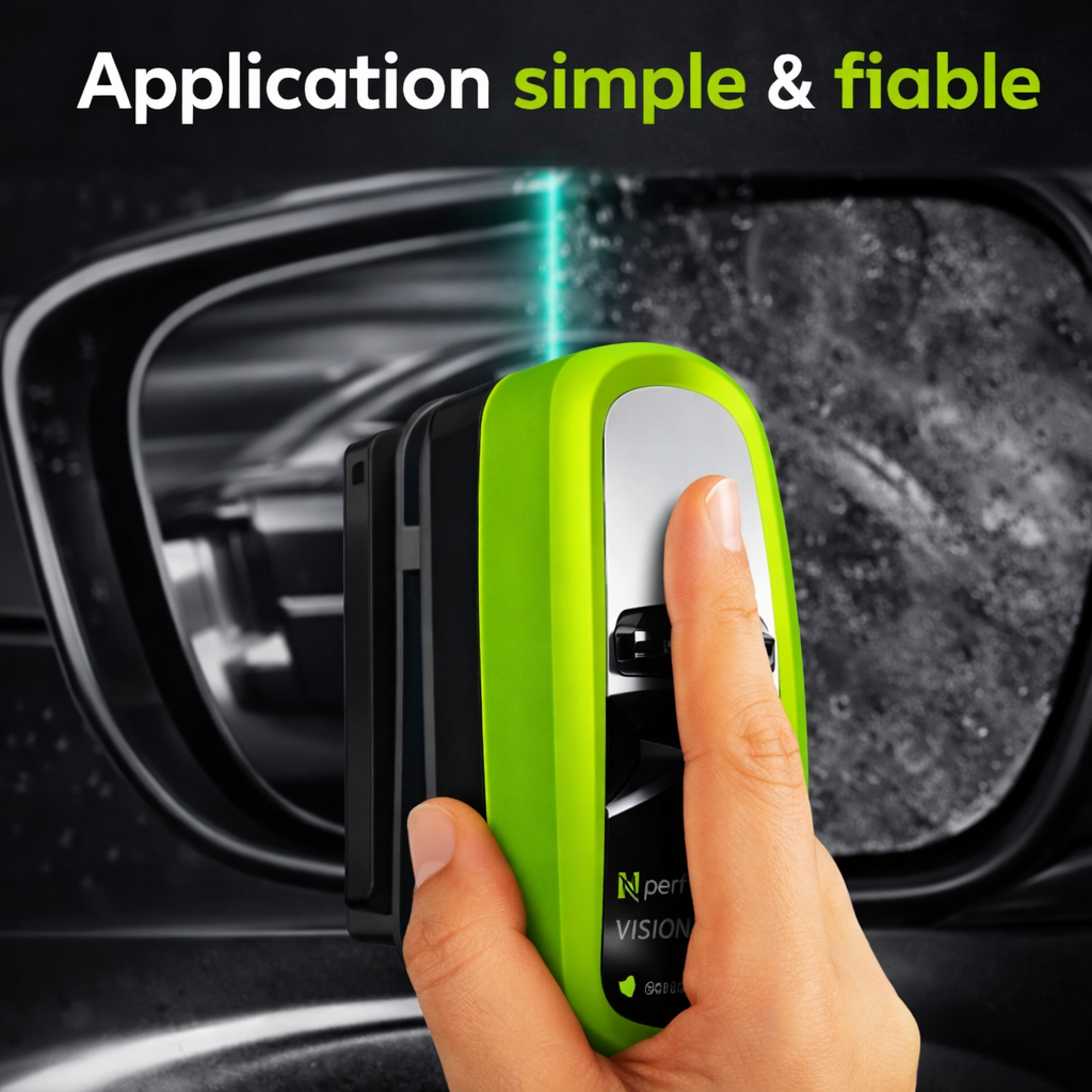 N-PERF Vision™ agit instantanément. Un simple passage suffit pour éliminer les taches d'huile tenaces, repousser l'eau et empêcher la formation de buée. Sans frotter. Sans laisser de traces. Une visibilité parfaitement claire pour conduire en toute sécurité, quelles que soient les conditions météorologiques.